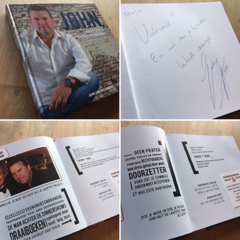Wat levert ambitie op? Wat drijft je om nog een stap verder te gaan? Voor wie doe je het eigenlijk? Wat brengt je dat? En wat is – uiteindelijk – succes? John den Hollander – groot hart, passie, selfmade man, rasondernemer, vader op afstand – blikt terug. Hij tekent zijn ondernemers- en levenslessen op voor zijn zoon die hem amper kent. Met zijn openhartige verhaal inspireert hij ook ambitieuze jonge honden, andere ondernemers en mensen uit de evenementenbranche. Een inspirerend boek over lef, leren, vallen en weer opstaan (hardcover, 21 x 21 cm, 252 pagina’s). Voor deze boeiende biografie gaf ik advies en was ik verantwoordelijk voor het drukwerk.